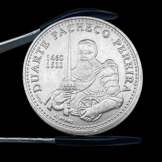 Emitida em 1999, esta moeda comemorativa de 200 Escudos integra a X Série Descobrimentos Portugueses. Foi dedicada a Duarte Pacheco Pereira (1460–1533), célebre navegador, militar e cartógrafo português, reconhecido pelo seu papel na expansão marítima e pela obra Esmeraldo de Situ Orbis, um dos tratados mais importantes da geografia quinhentista.