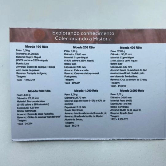 Cartela para moeda de 100 Réis Comemorativa – IV Centenário da Colonização do Brasil (Série Vicentina – 1532 a 1932). Uma peça especial que valoriza e protege esta moeda histórica, símbolo de um dos períodos mais marcantes da nossa trajetória nacional.